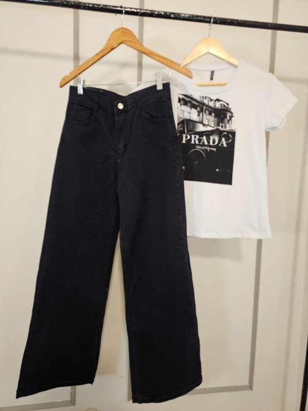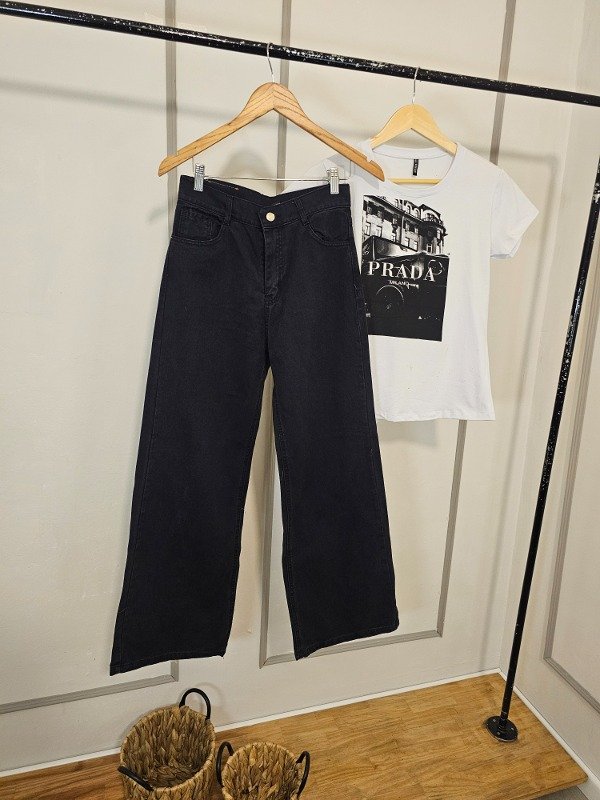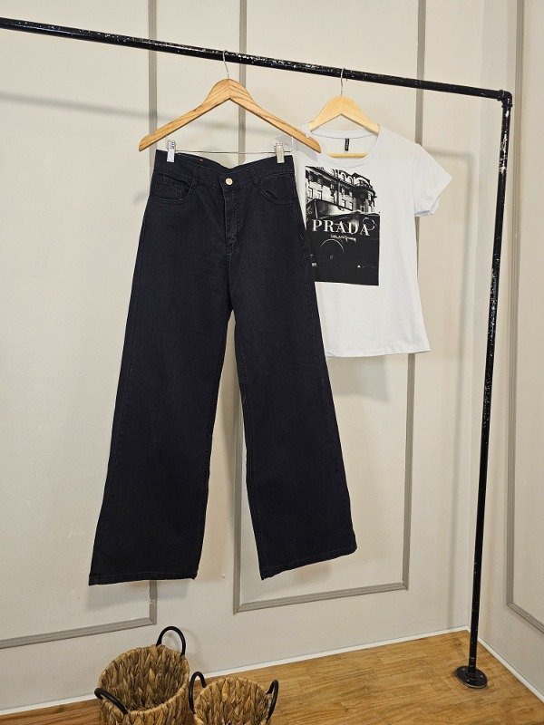 Jeans wide leg negro stone
