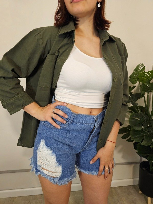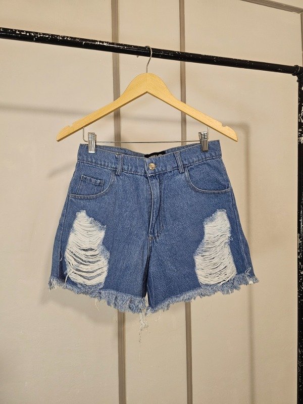 ♡ Short de jeans tela rigida con rotura laser